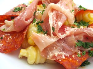 Take the snack I prepped for myself an hour ago for example. Rather than opening an over-prized bag of crappy nachos (Totopos), a can of over-prized, VERY crappy cheese dip and a tub of sometimes surprisingly decent salsa Mexicana, why not grill up a good quality naan and cover it with a few slices of great quality coppa ham, pecorino cheese and a few marinated chilies and pronto ! – great food for about the same price and effort. Life (and a midnight snack) is what you make of it 🙂