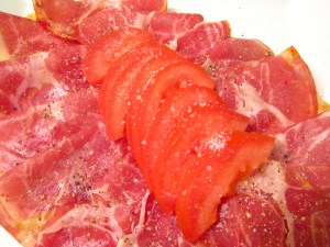 - add thinly sliced tomatoes and a few drops of EVO, sprinkle with kosher salt
