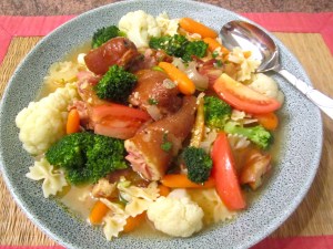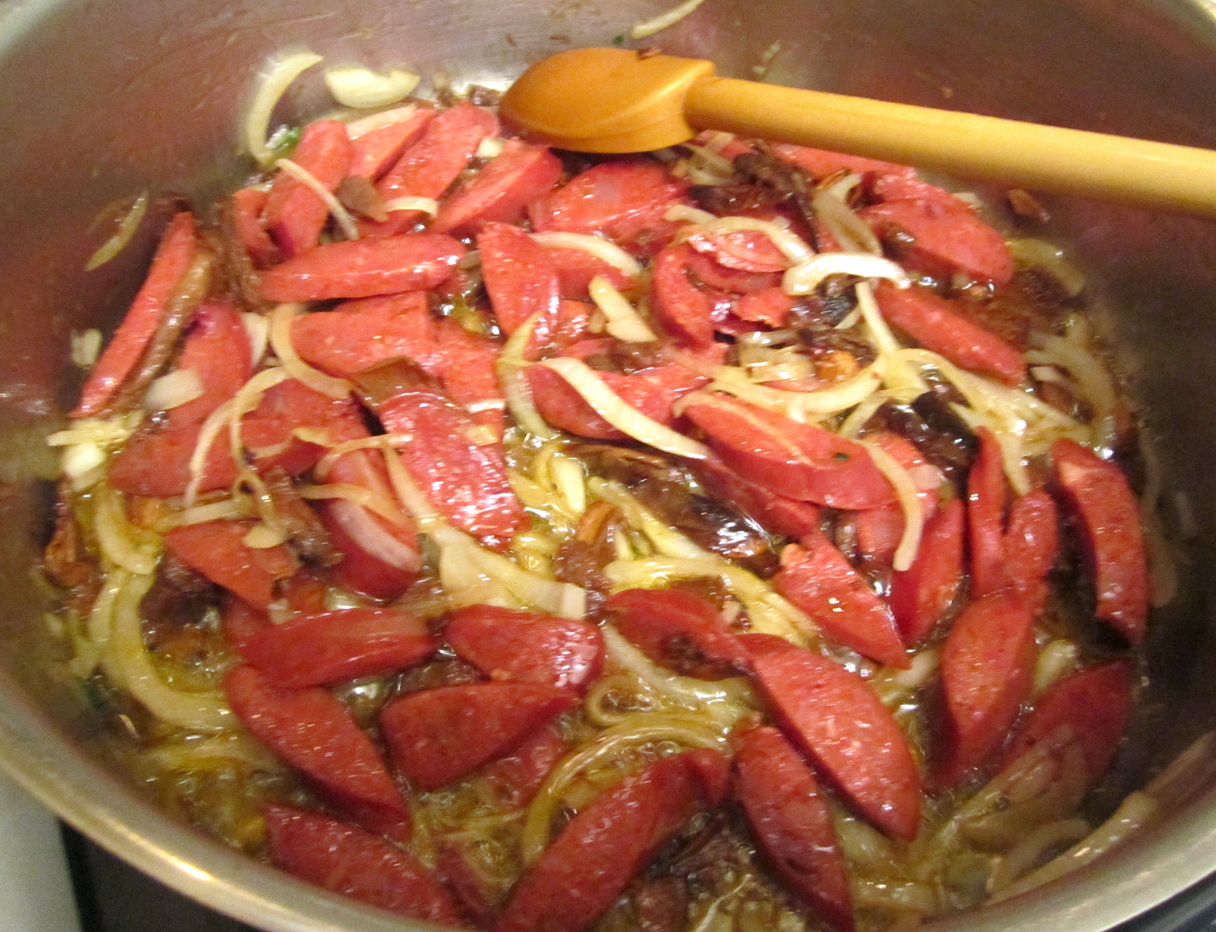 - when onions are lightly caramelized, add 8 oz cooked and drained garbanzos