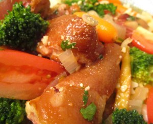 As a general rule, when preparing curried garbanzos to be served hot, I add more ghee, about 4 tblsp for 16 oz of garbanzos. If serving as a cold (room temperature) salad, I reduce the amount of ghee by 3 tblsp and replace with that 2 tblsp mayo and 1 tblsp ketchup.