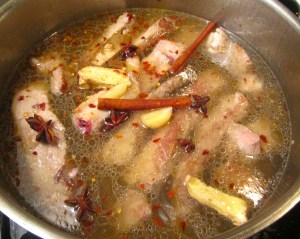 - peel and dice 2 lg baking potatoes, simmer in lightly salted water until soft but NOT falling apart
