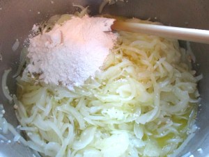 What makes this variation so special is the addition of bread and gruyere to the top of the onion soup, then it get’s some time in the oven or under the broiler until the top is a bubbly, fragrant, addictive, gooey mass of melted bread and cheese.
