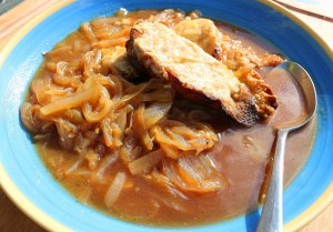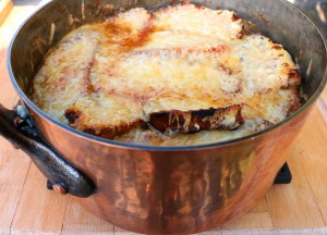 Known and loved most everywhere in the world, it is “French Onion Soup” (Soupe à l’oignon / Soupe d’oignons aux Halles/ Soupe à l’oignon gratinée)