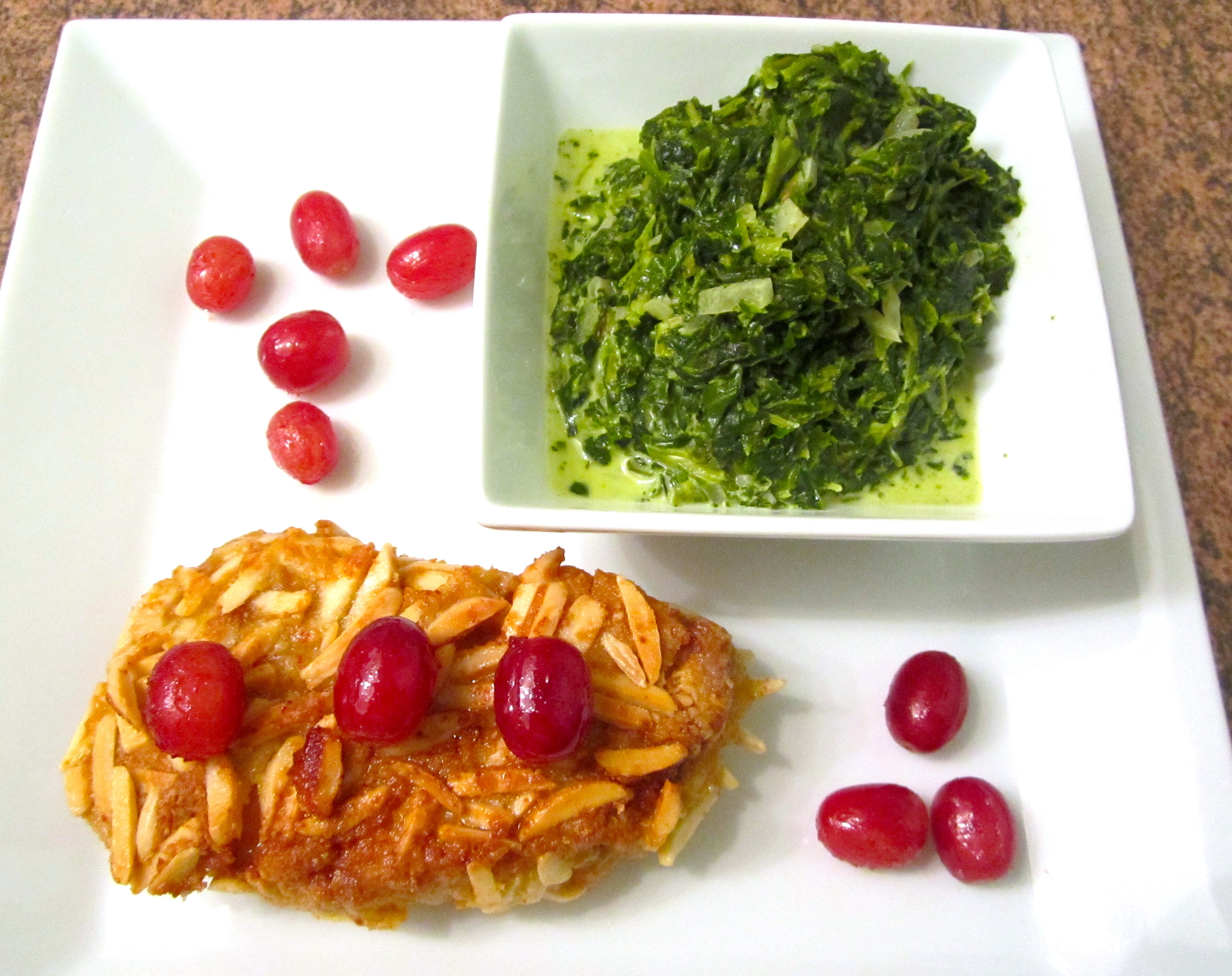 Well, I prepared this meal on Christmas day just for Bella and myself, so I took some shortcuts which I usually might not have taken, namely using frozen creamed spinach, which I enhanced with some additional heavy cream and a pinch of nutmeg. The result was VERY yummy.