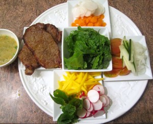 Today’s dinner salad was pretty special for me, because it contained six of my favorite food items – endive, pears, Gorgonzola, garlic, shiitake mushrooms and Entraña (faux hanger steak).