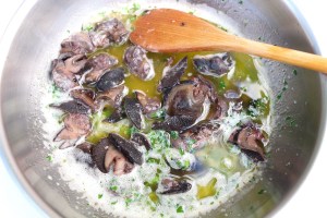 - whenthe onions are translucent, add the snails and 2 tblsp chopped parsley, saute 1 minute, check/adjust seasoning