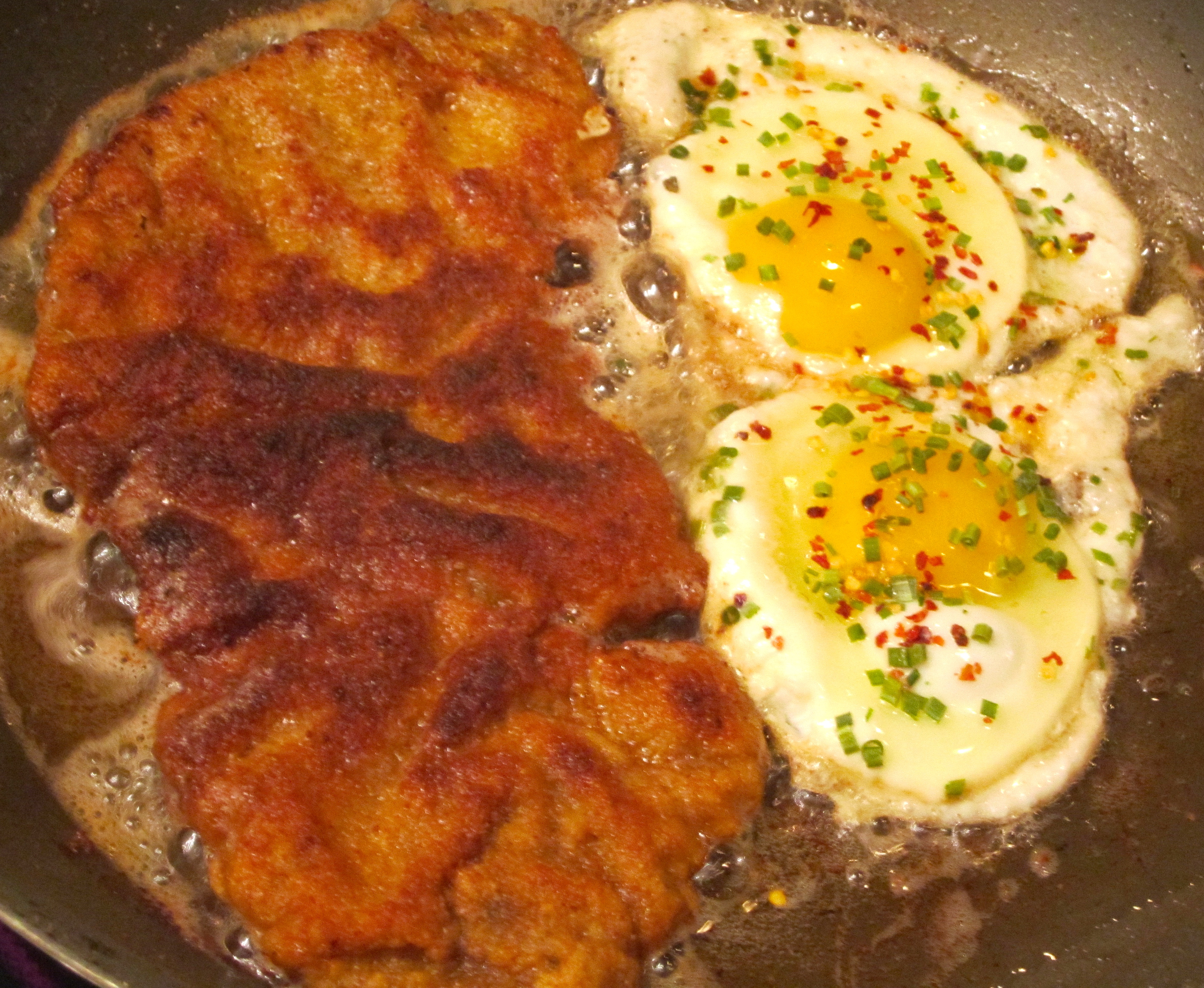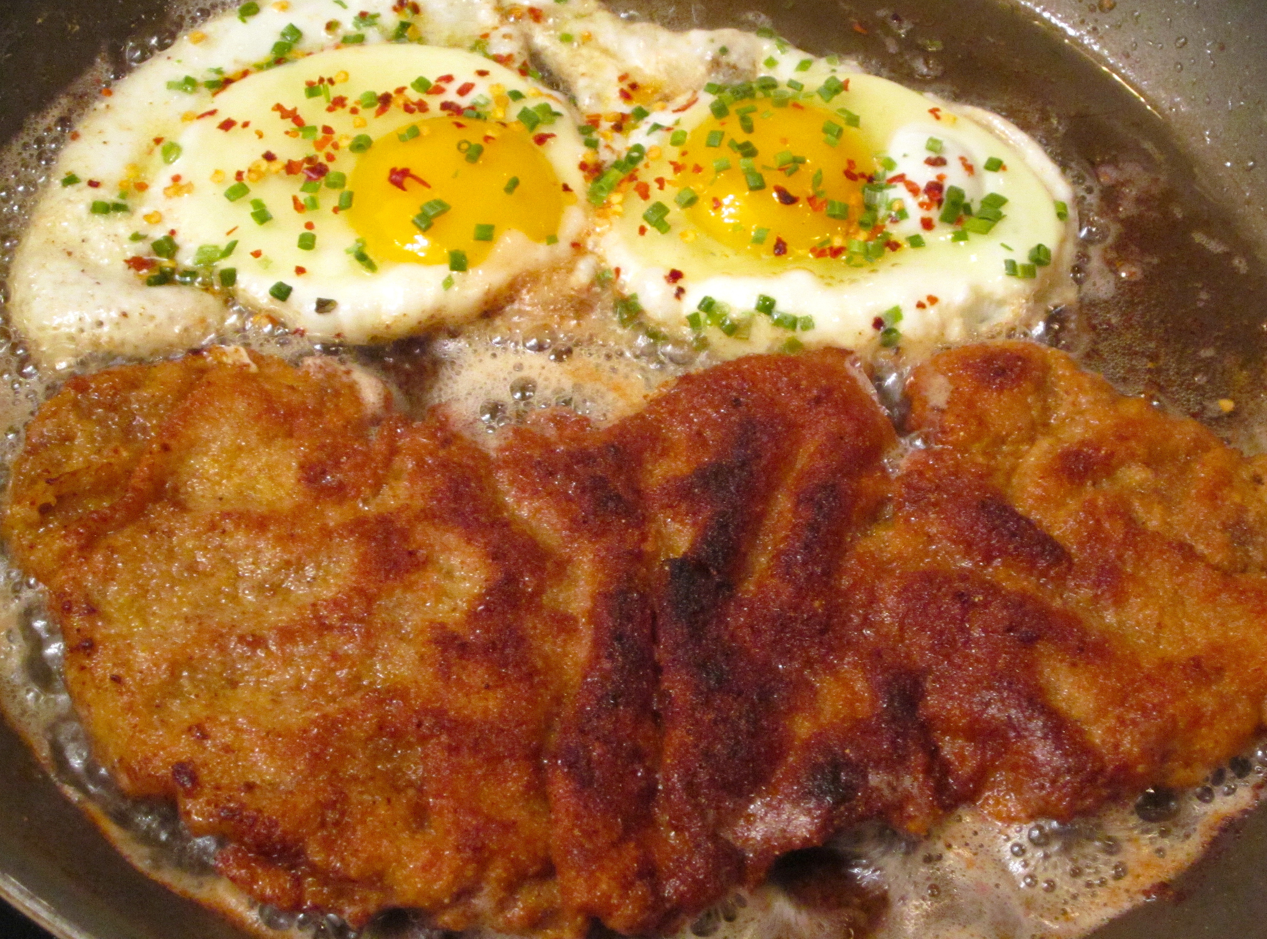 - crisp and golden on one side, turn and cook on second side uncovered, when almost cooked, discard the oil and add some whole butter to finish cooking