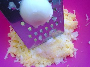 - season eggs with dijon mustard, kosher salt and sriracha to taste, whisk all together