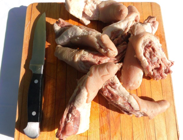 I will eat PT (pig’s tails) with gusto, in whatever guise you set them before me – braised in soy sauce, salted, fried, in stews, souse, soups, or just by themselves with bread and condiments, as shown here.