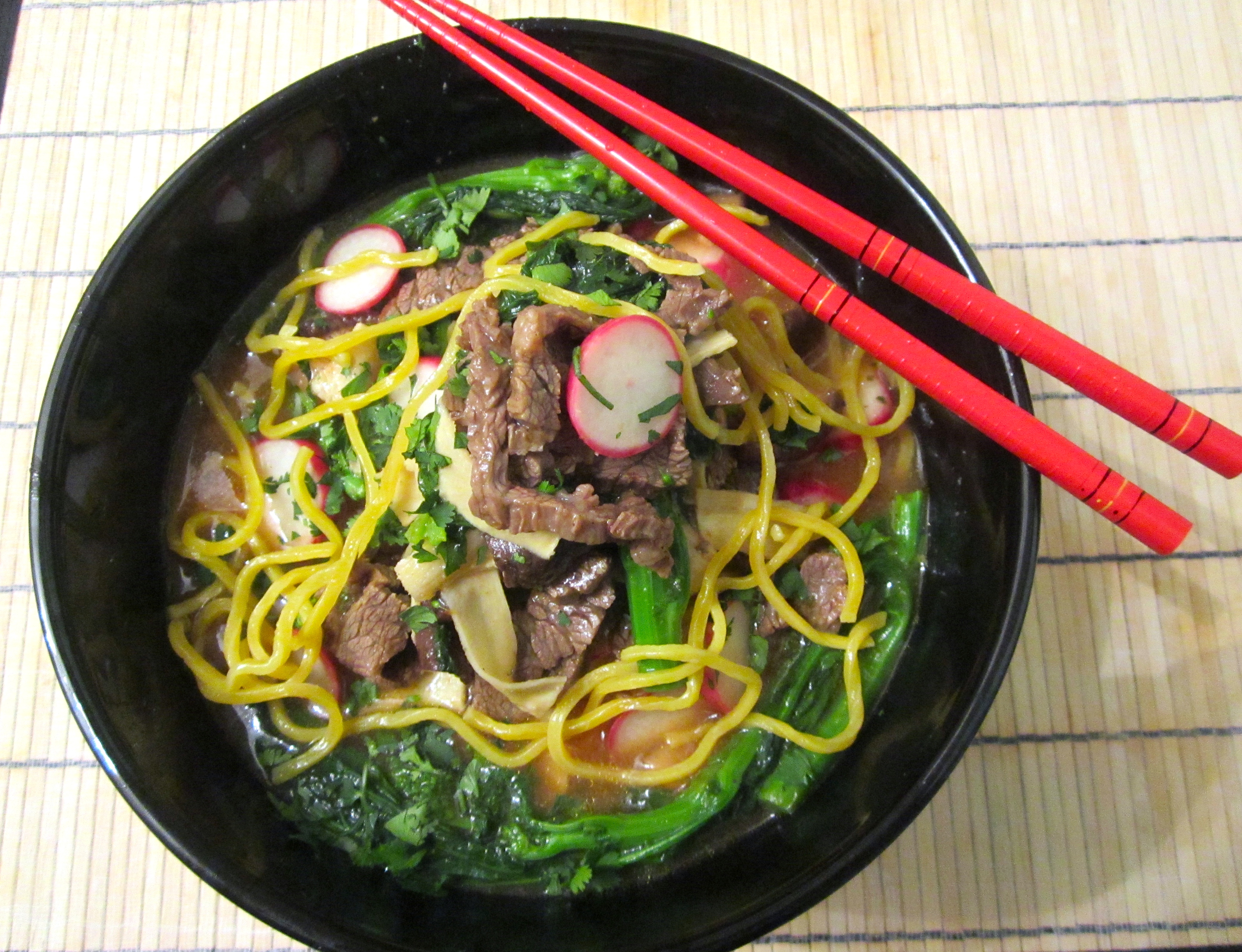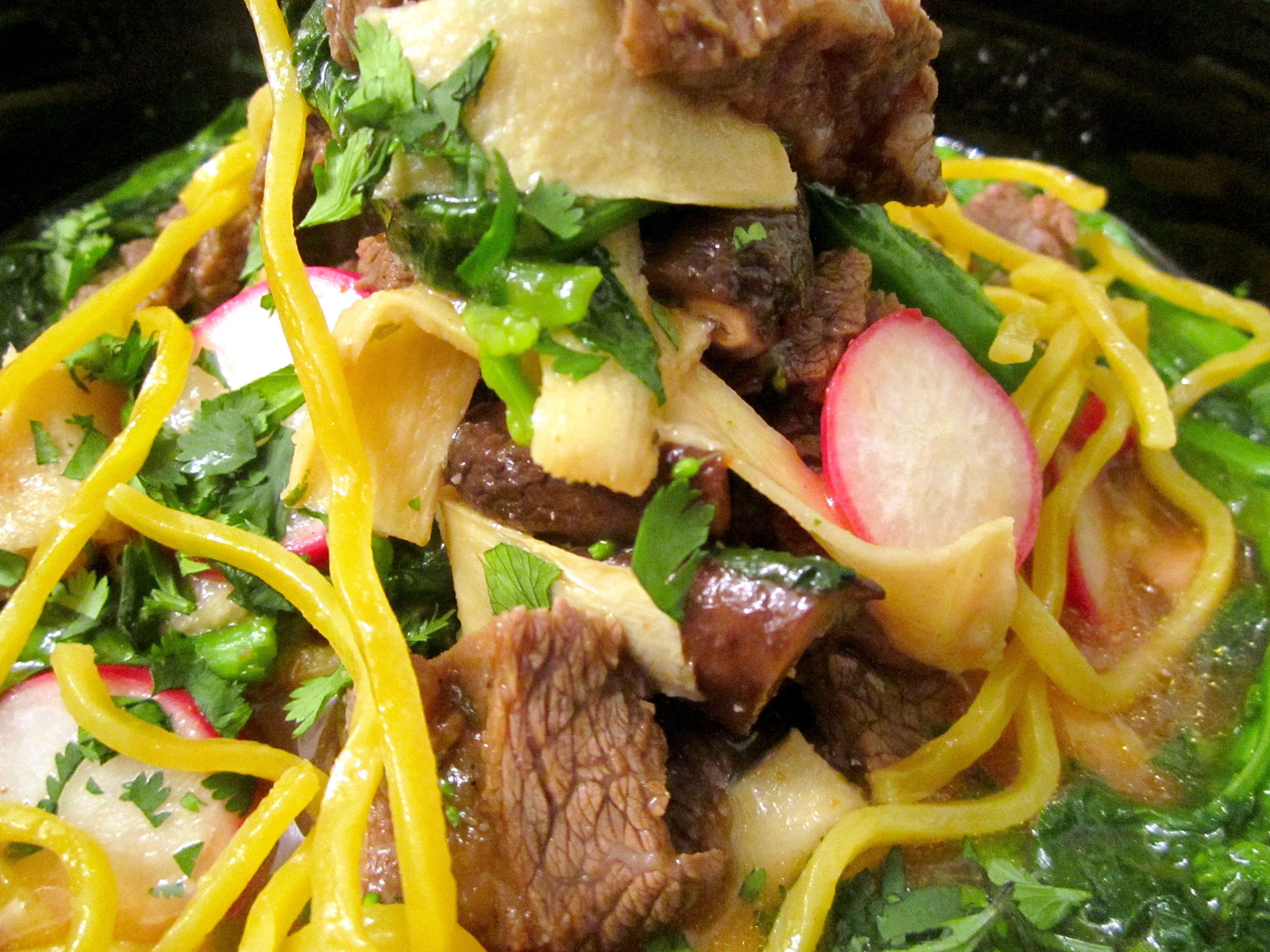 Last night I wanted to have a spicy snack at around midnight. Had to be quick and easy. Here is what I prepared. It took about 3 minutes of actual prep time and less than 15 minutes from start to finish. (I had some blanched rapini and cooked lai fen in the fridge from yesterday’s lunch and green lips on the half shell in the freezer). What a convenient product fresh frozen seafood is. If you make sure you buy quality merchandise and handle it with care, frozen seafood will make for a great snack or quick meal in no time. This soup was just awesome 🙂