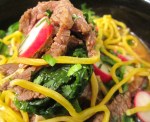 - Green Lip Mussels, Lai Fen Rice Sticks And Chopped Broccoli Rabe In Red Curry/Coconut Soup