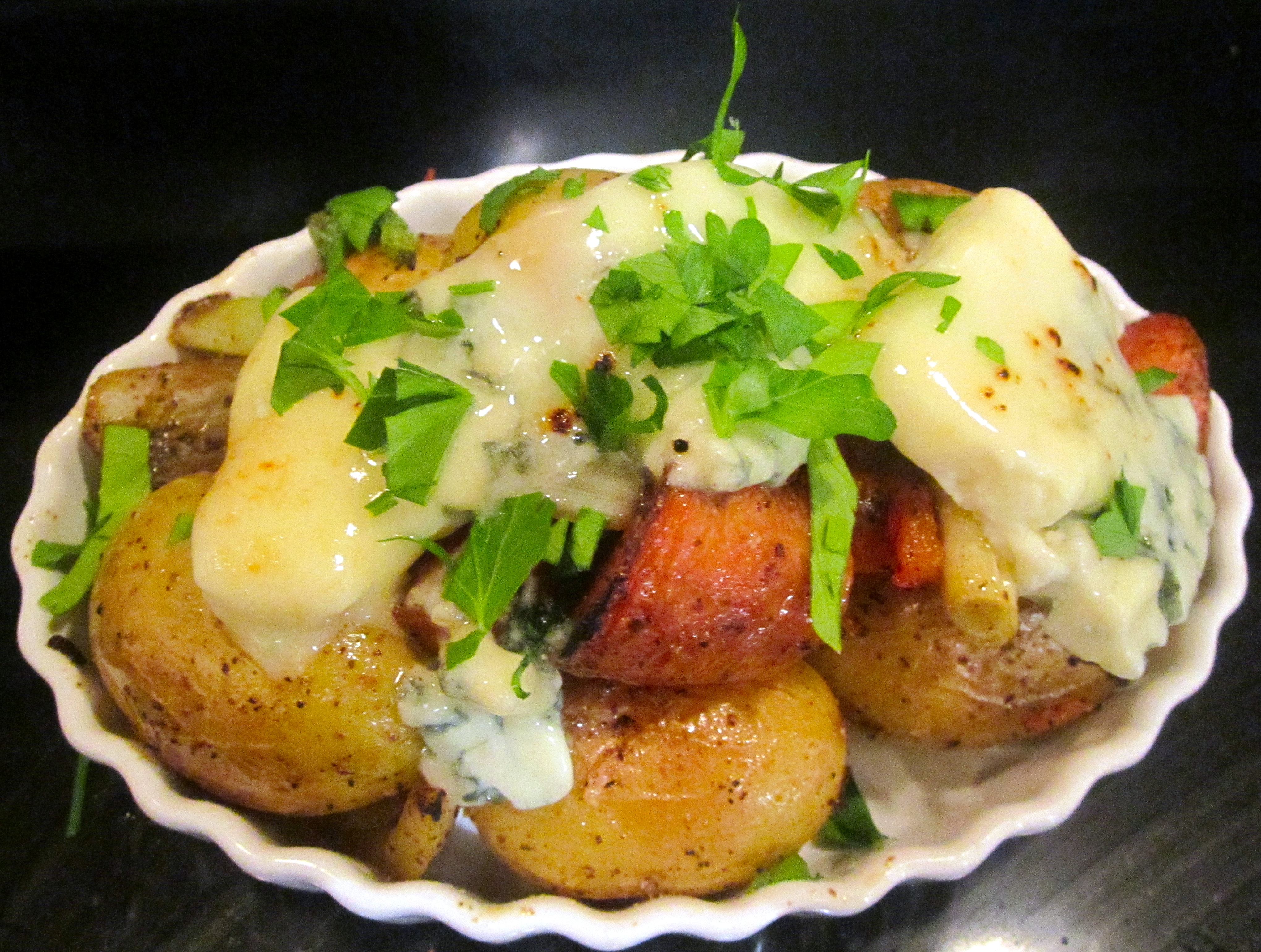 - top with crumbled gorgonzola and a bit of bread crumbs, bake at 425F until bubbly and browned on top and bottom