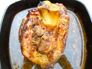 - put in baking dish or cast iron pan, add some water, cook at 375F for 3 hours