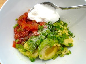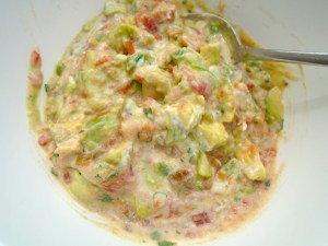 - mix 2 cup cooked beans of your choice with 1/2 cup chopped tomatoes, 2 tblsp chopped cilantro, 1 tblsp lime juice,1 tblsp veg.oil, kosher salt, garlic paste, cummin and hot sauce to taste