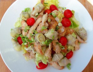 - Butter Lettuce With Chicken, Artichokes And Grape-Tomatoes In White Balsamic Vinaigrette