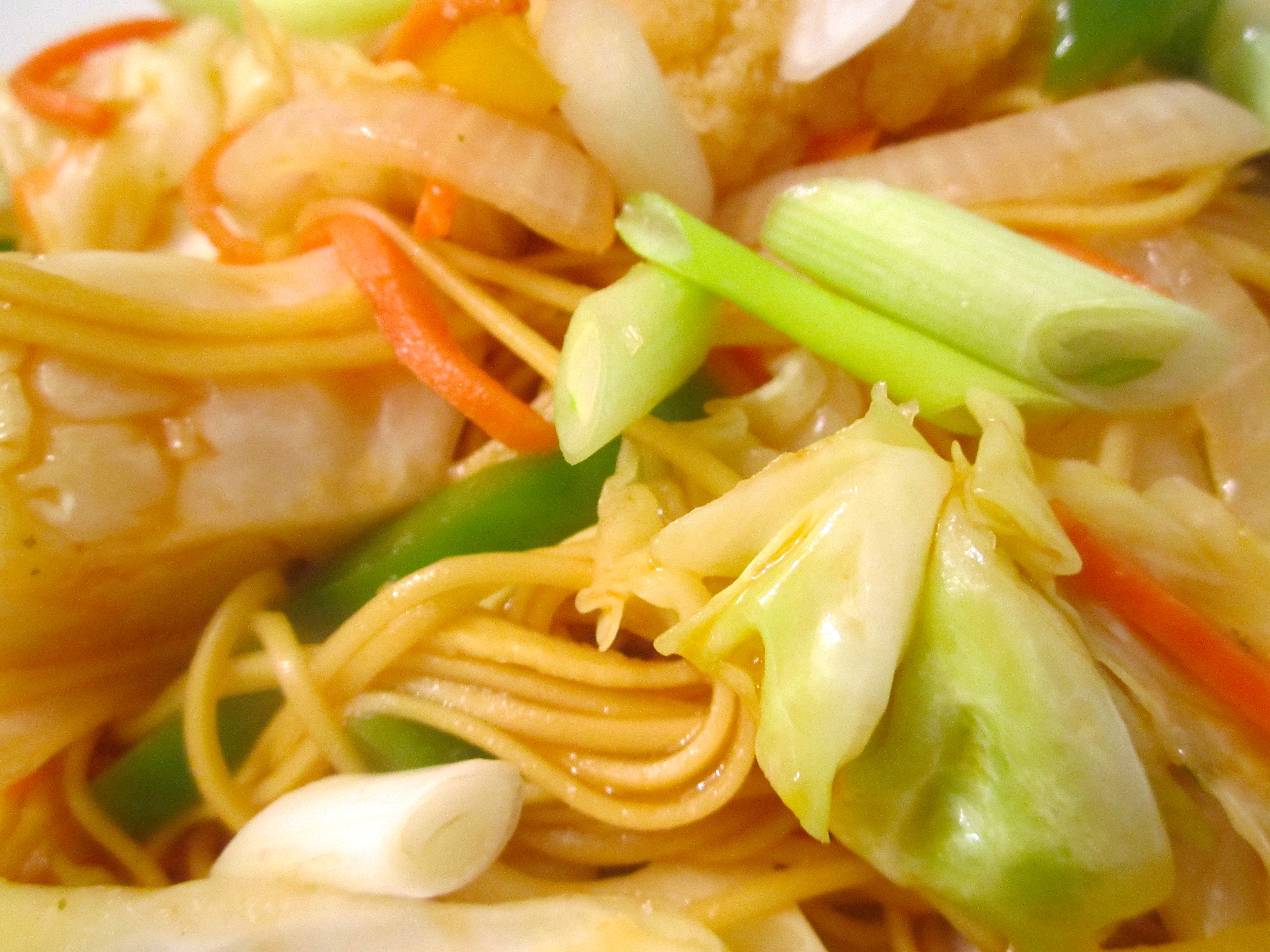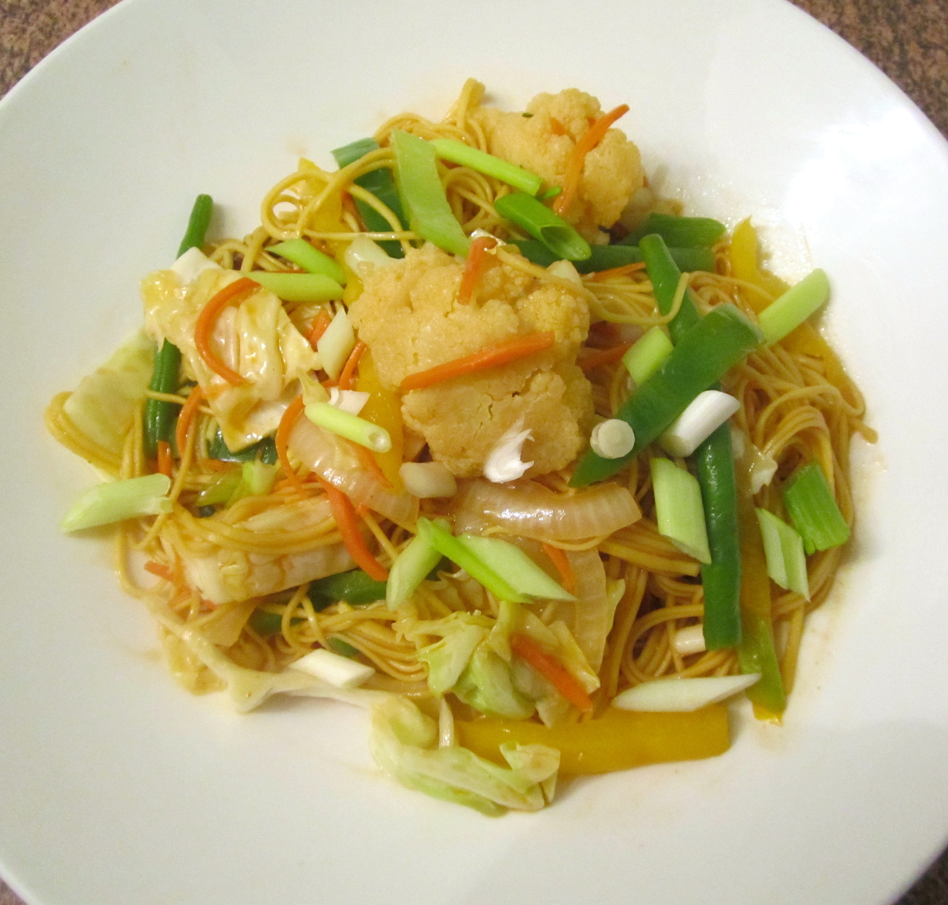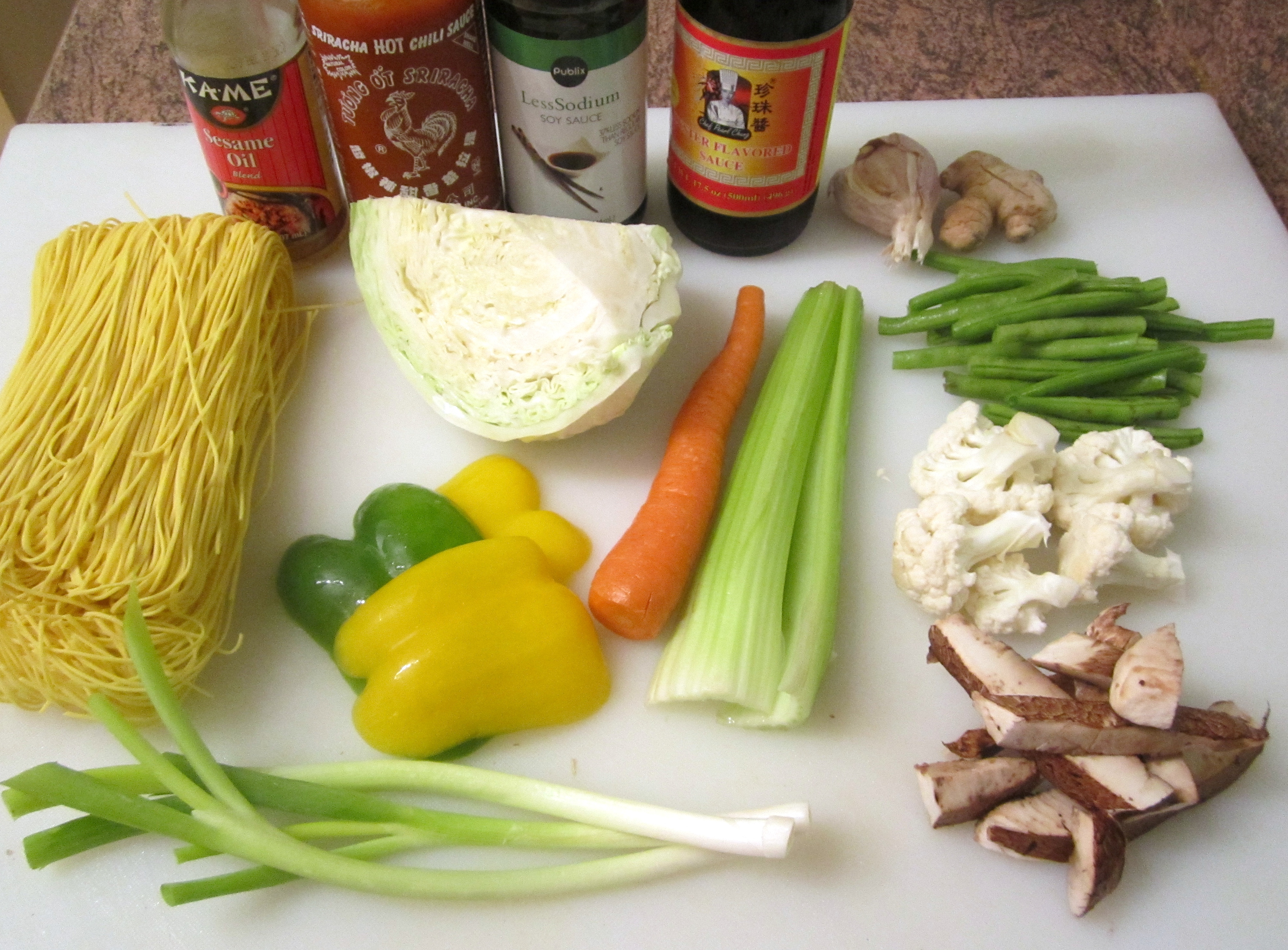 - 1 can drained, washed cannellini beans, 1/2 cup diced red and yellow peppers, 1/4 cup sliced scallions