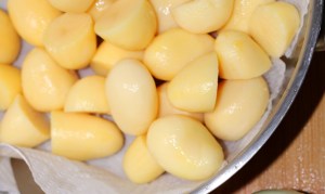A week ago I bought a large bag of fresh, beautiful peppers at my neighborhood Turkish grocery store. Since then, I have eaten most of them, usually grilled and served as a side dish to meat or seafood, with tzatziki as a dip. Today I needed something to accompany my dumplings, and yet another grilled peppers dish did not sound very enticing. Also, I did not feel like eating fish or meat and so I choose the bread dumplings to be the main component of the meal. Since dumplings need a good sauce to be properly enjoyed, this tasty cream sauce with pimentóns seemed to be the perfect combination. Low and behold, it turned out to be VERY delicious, and it hit the spot precisely 🙂