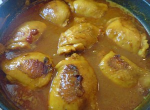 - stir fry 1 ea large, finely diced onion 1/2 tsp grated ginger and 1 tblsp garlic pasete in 2 tblsp peanut oil until translucent
