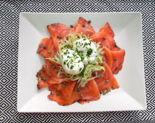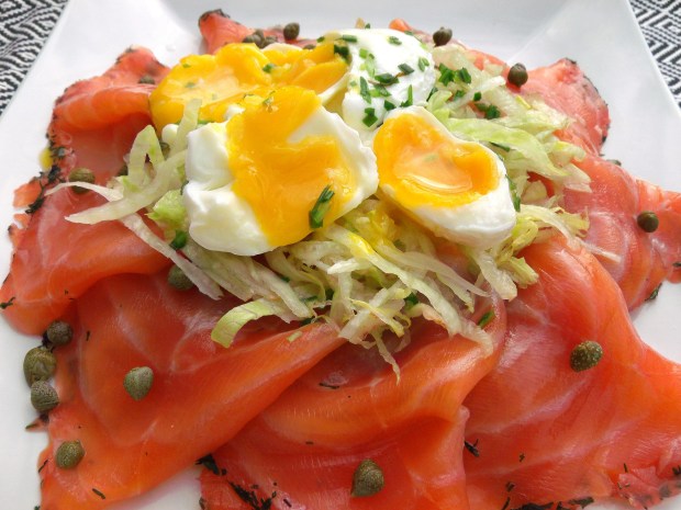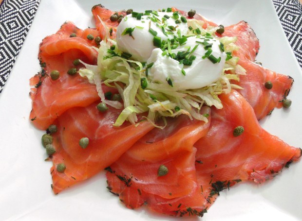 - Rösti-Waffles, Gravlax And Poached Eggle with capers and finely sliced chives