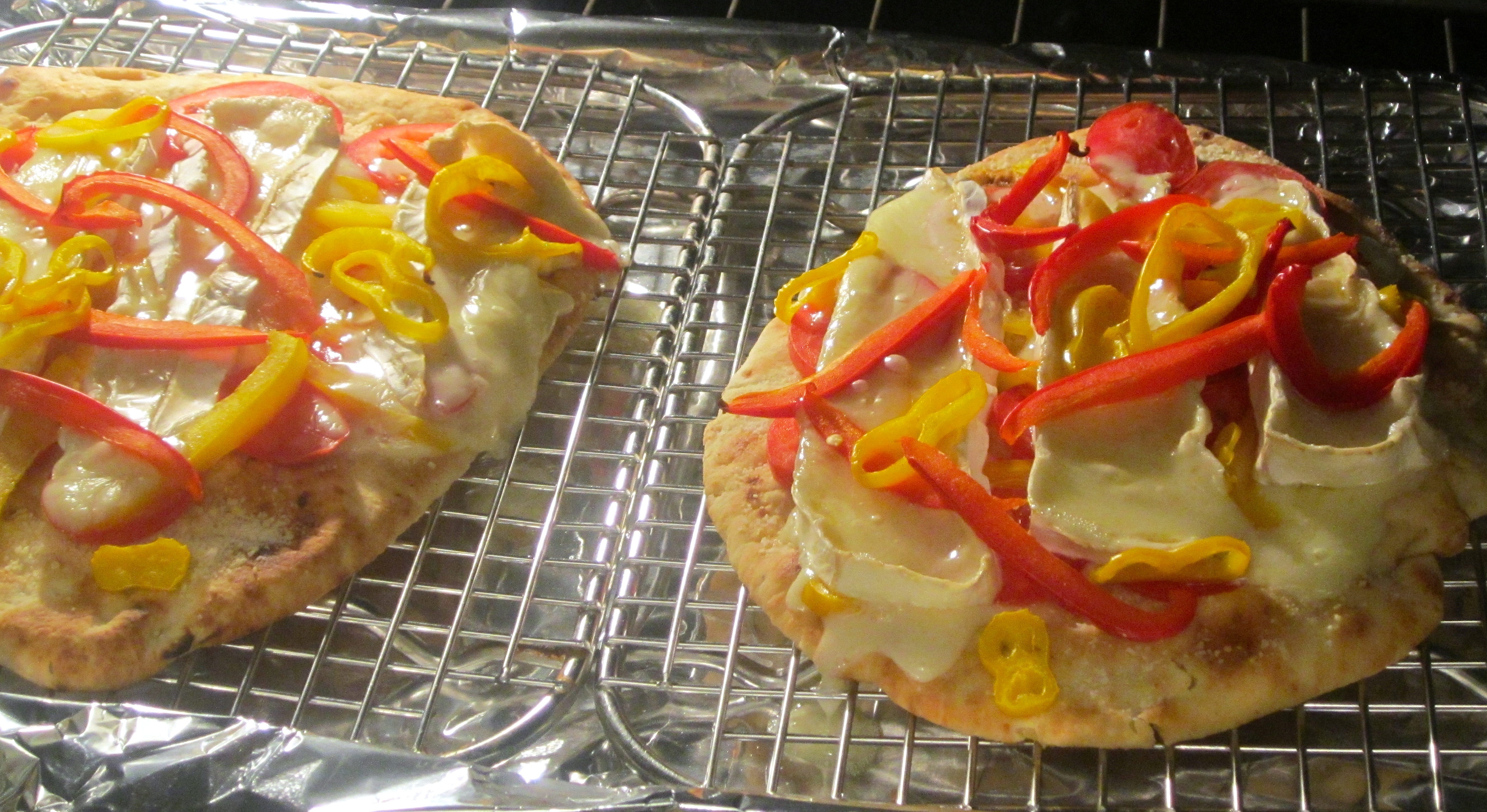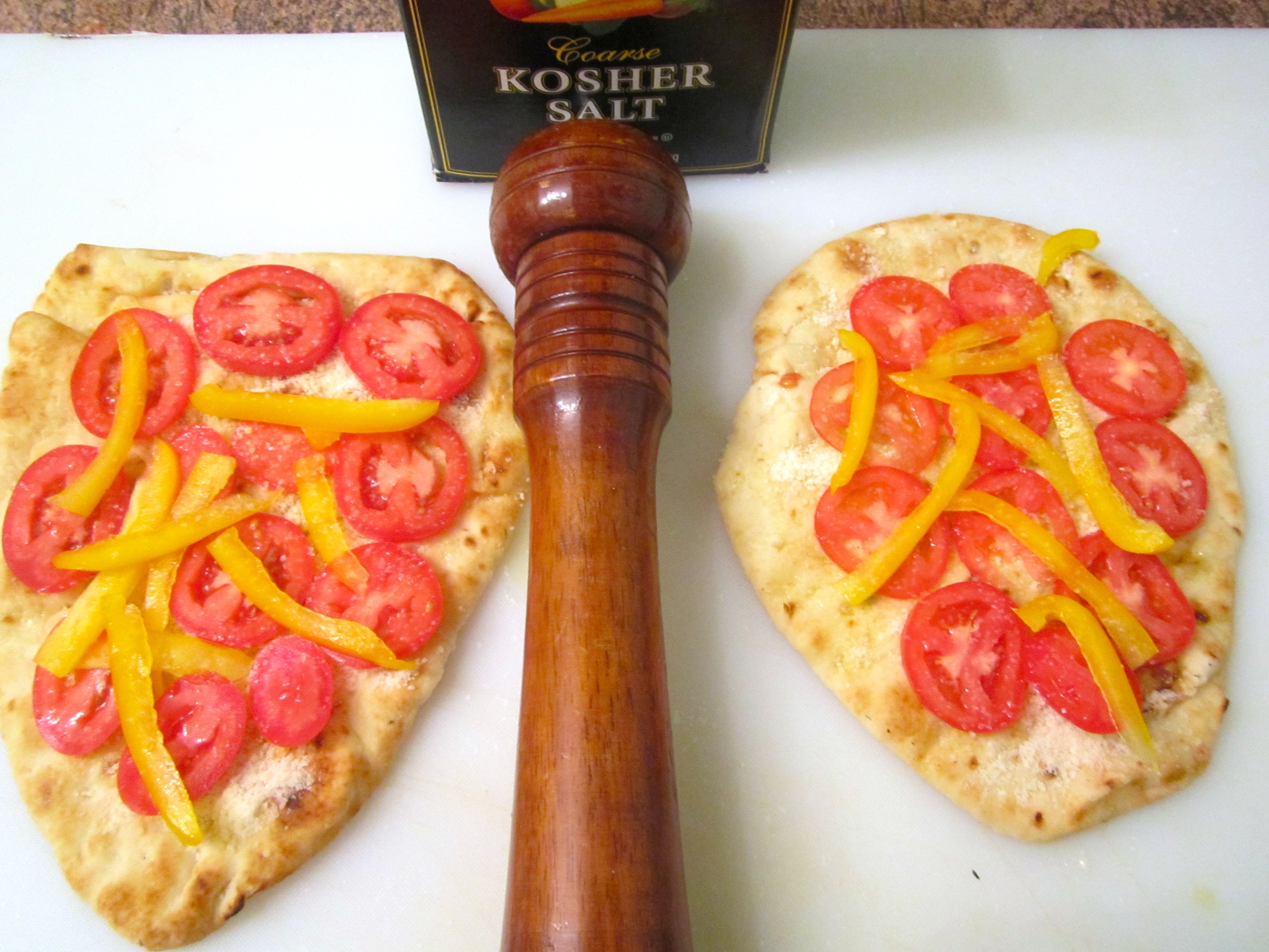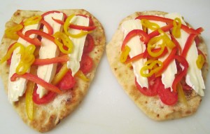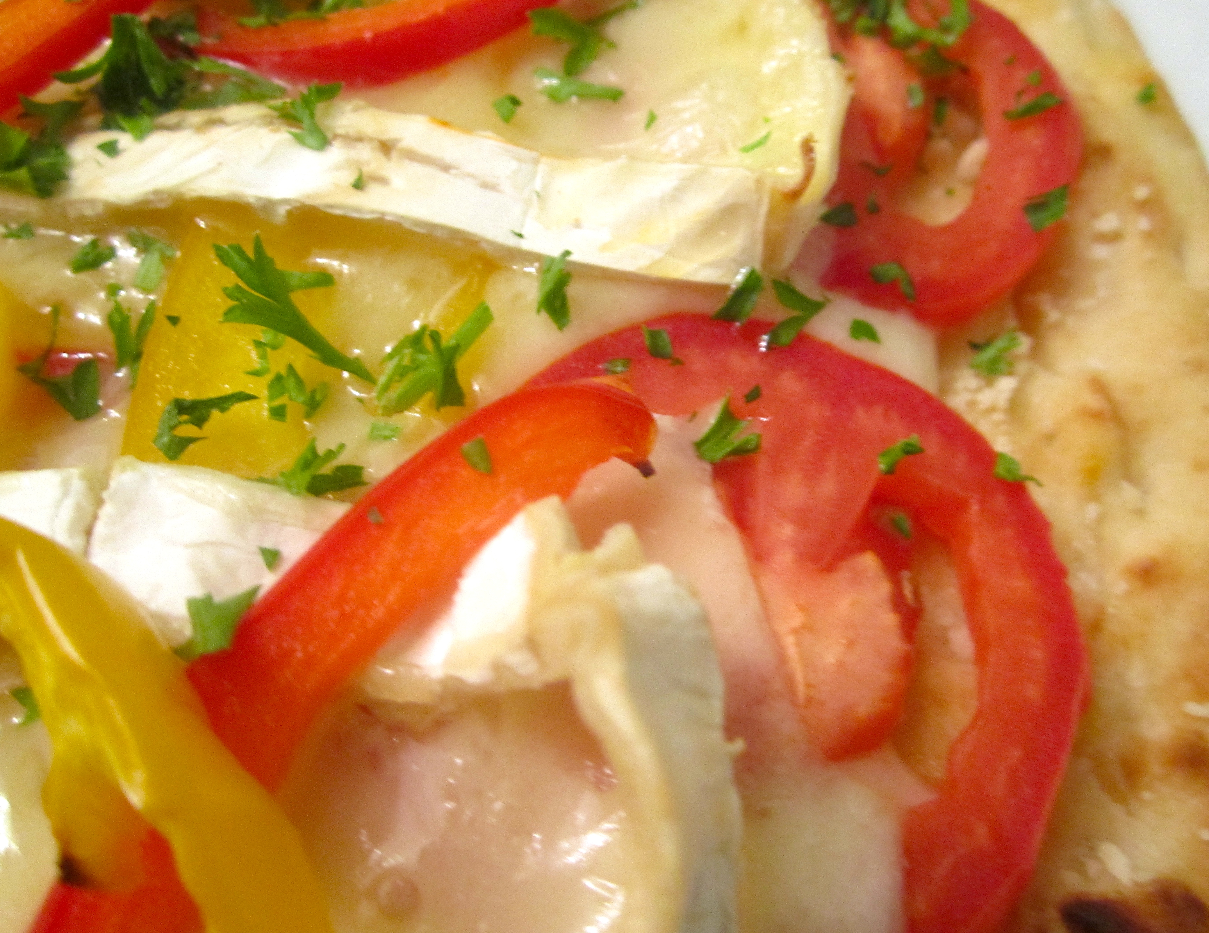 - slice sour dough/jalapeno bread thinly, brush with garlic paste, grill an both sides