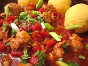 - cook a whole med size chicken with 4 scallion stalks, 1 large peeled onion, kosher salt o taste and one tsp dried oregano in 2 qt water until chicken is tender, remove chicken and set aside; there should be 1 qt stock remaining – check/adjust seasoning