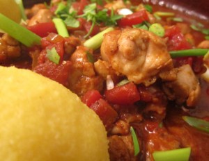 - drain and rinse one 12 oz can of homini, add to the chicken