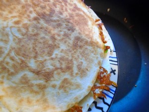 - slide back into pan (or comal), cook very slowly to give the cheese time to melt without burning the tortilla