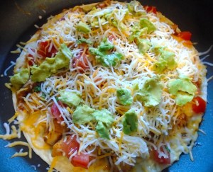 Make them a meal with large flour tortillas, or gluten-free with corn tortillas. A little low-fat cheese and a lot of vegetables, and they could almost pass for a health food; on the flip side, a generous pile of shredded pepper-jack could be the remedy for a bad hangover. A good quesadilla is a thing of beauty. It’s crispy and golden brown at the edges, but a bite quickly reveals a soft interior with gooey melted cheese. For this quesadilla I used chicken , which you can replace with other proteins of your choice, such as shrimp, beef, chorizo, etc. For a vegetarian alternative, just omit the animal-protein and add more vegetables.
