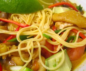 - de-bone and remove skin from 3 ea chicken breasts, pound thin between 2 plastic sheets, season with kosher salt and cayenne pepper to taste, dust lightly with a/p flour, saute in 1 tblsp peanut oil until cooked through