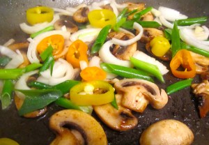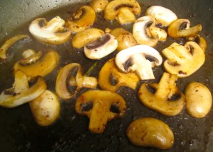 - add 6 oz sliced button mushrooms, saute until lightly browned