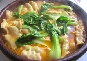 - Pork Soup With Pork & Leek Dumplings, Baby Bok Choy And Scallions