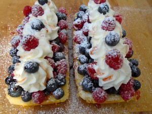 - bake at 350F until caramelized, drizzle with strawberry preservepreserve