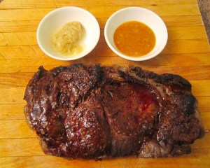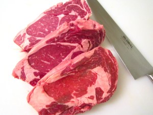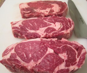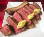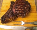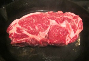 - season bone-in rib eye with kosher salt and cayenne pepper, grill to your preferred internal temperature