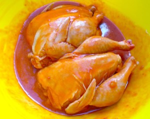 - when poussin is cooked through, brush one final time with buffalo sauce