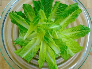 - cover serving dish with romaine