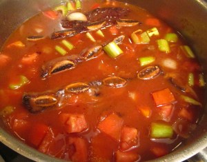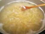 * Saute sugar until lightly browned. Add water. If you have not done this before – BE VERY CAREFUL ! This splashes easily and burns right throuhg your skin if you are not careful. I suggest to put the pot into the sink and open the waterspout just a bit while keeping your head as far away as possible 🙂 Stir until smooth and all sugar is desolved. You should now have a light brown liquid. If the sugar solidified, don’t worry. Just put it back on low heat, stir frequently and simmer until all solids are liquified.