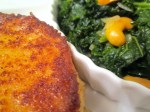 Add bok choy and blanched cauliflower, season with kosher salt and sriracha. To plate, sprinkle with chili flakes