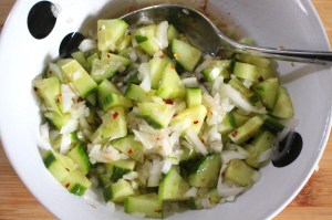 steamed rice,tomato chutney, curried chick peas, spicy cucumber salad – this alone would be a great meal