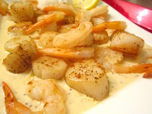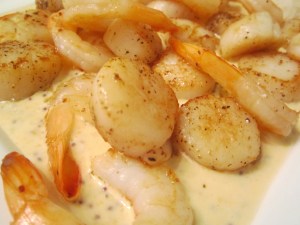 - mix 1 cup panko crumbs,1 cup a/p flour and kosher salt and cayenne pepper to taste, dredge 2 ea beef svallops