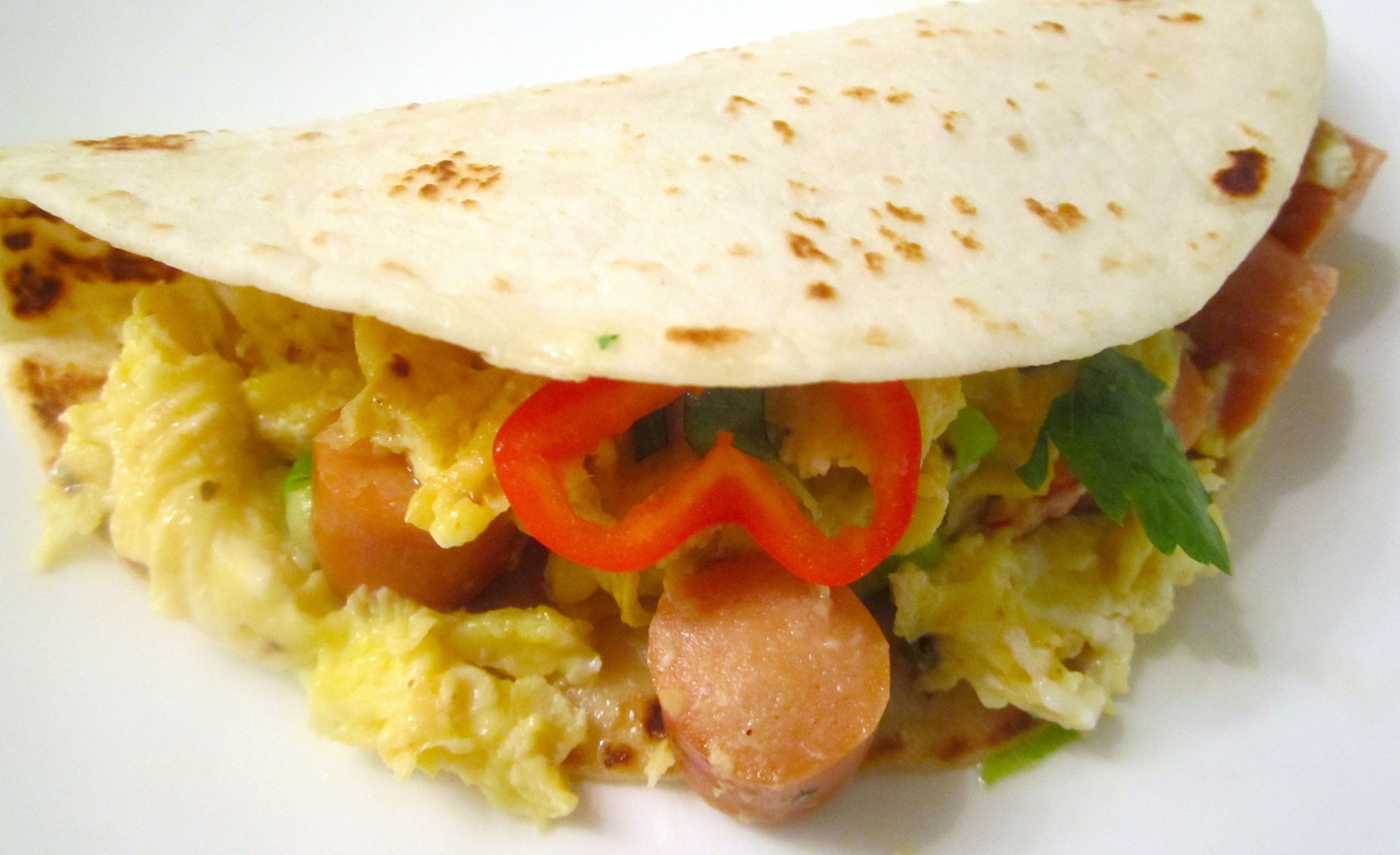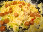 In 3 oz of whole butter or 2 tblsp EVO saute 1 cut scallion, 1 green chili and 2 ea diced tomatoes until heated through, add the eggs, cook until done to your liking.