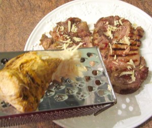 Most  folks I know would shun a blade steak as inferior cut, too lowly to use as a steak. But let me assure you, as far as pork steaks go, you will be hard pressed to find a better cut. The blade has a wonderful texture and taste, very juice, tender and yes, very economical (we don’t say cheap 🙂 )