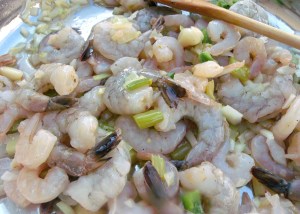 - add 2 lbs raw shrimp, season with kosher salt and cayenne pepper to taste