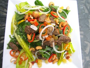 Saute 2 oz chopped bacon, 1 tsp garlic paste, julienne of 1/2 onion, 6 oz fresh spinach in 2 oz butter, add 8 oz fresh spinach and 1/3 cup heavy cream, simmer 1 minute, remove from heat, add julienne of one medium size onion, 1 ea seeded and julienned tomato and the freshly cooked vareniki, check/adjust seasoning. to serve, sprinkle with grated pepper-jack.