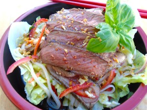 Of course, the meat/seafood must be combined intelligently with ingredients which enhance the dish, not just be a cheap filler. In the average restaurant these days, too many times the combinations appearing in front of you are less than fortunate, and the concoction of a tiny bit of inferior meat/seafood and a bunch of “rabbit food” ( mostly the outer leaves of greens) and some crappy bottled “dressing” does nothing to justify the (usually) premium price of most restaurants steak/seafood salad.