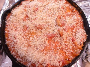 - sprinkle with 2 cup panko bread crumbs, broil at low heat until crumbs are crisp and golden