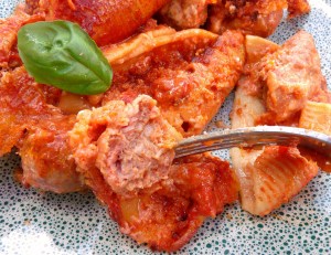 - cover with alu foil, bake at 350F for 45 minutes, until pasta is al dente and sausage is fully cooked