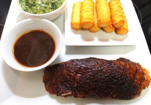 Serving Suggestion # 2 – Slow Roast Crispy Duck, Creamed Spinach, Pommes Croquettes & Red Wine Jus