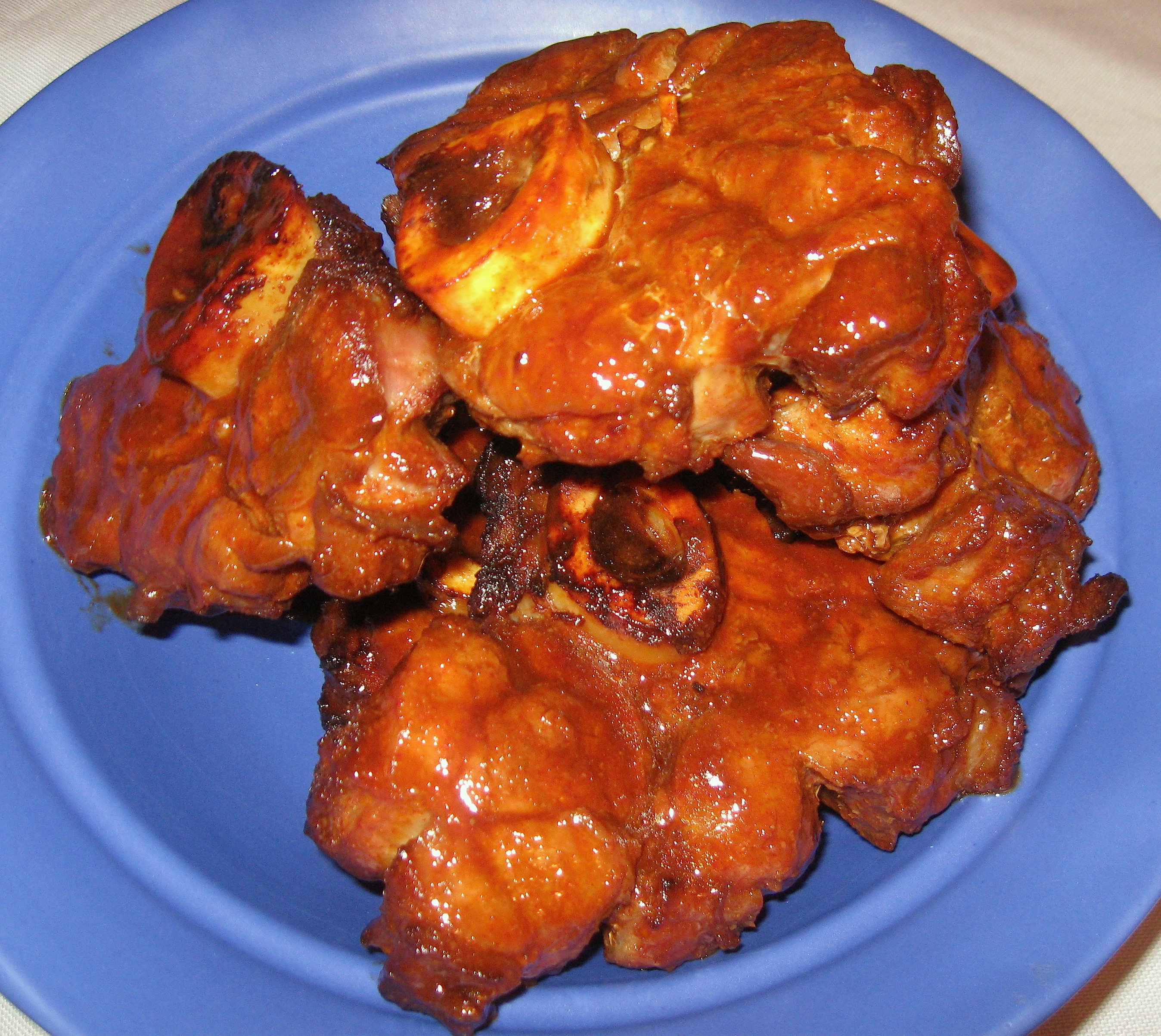 - remove 1/3 of the stock, reduce until thickened, put the pork on a baking rack, brush with the thickened glaze, bake for twenty minutes at 375F, brush with glaze every 5 minutes