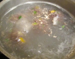 I have included spicy Italian sausage “meatballs” here since I had leftovers from yesterdays dinner. Frozen tomato soup is a staple in my freezer, since I usually make a large batch and freeze whatever I don’t eat right away. ( Empty” Crystal Light” containers are perfect and free for this). So all that was needed for this beauty of a soup was to cook the pasta, heat the soup and saute the sliced sausages in garlic oil.