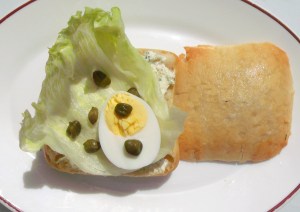 - top the boursin with a bit of greens, 1/2 a hard boiled egg and capers